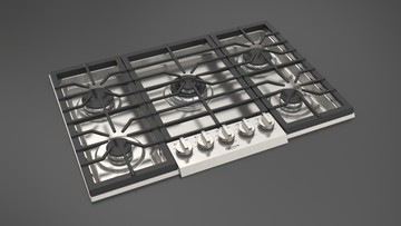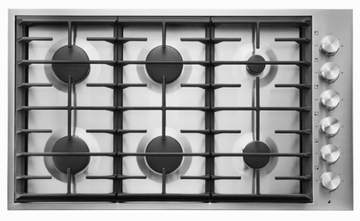 36 Inch Gas Cooktop with 5 Sealed Burners, Continuous Grates, FlameSelect, Dual Flame Power Burner, OptiSim® Burner, LP Conversion Kit, and Flame Failure Safety