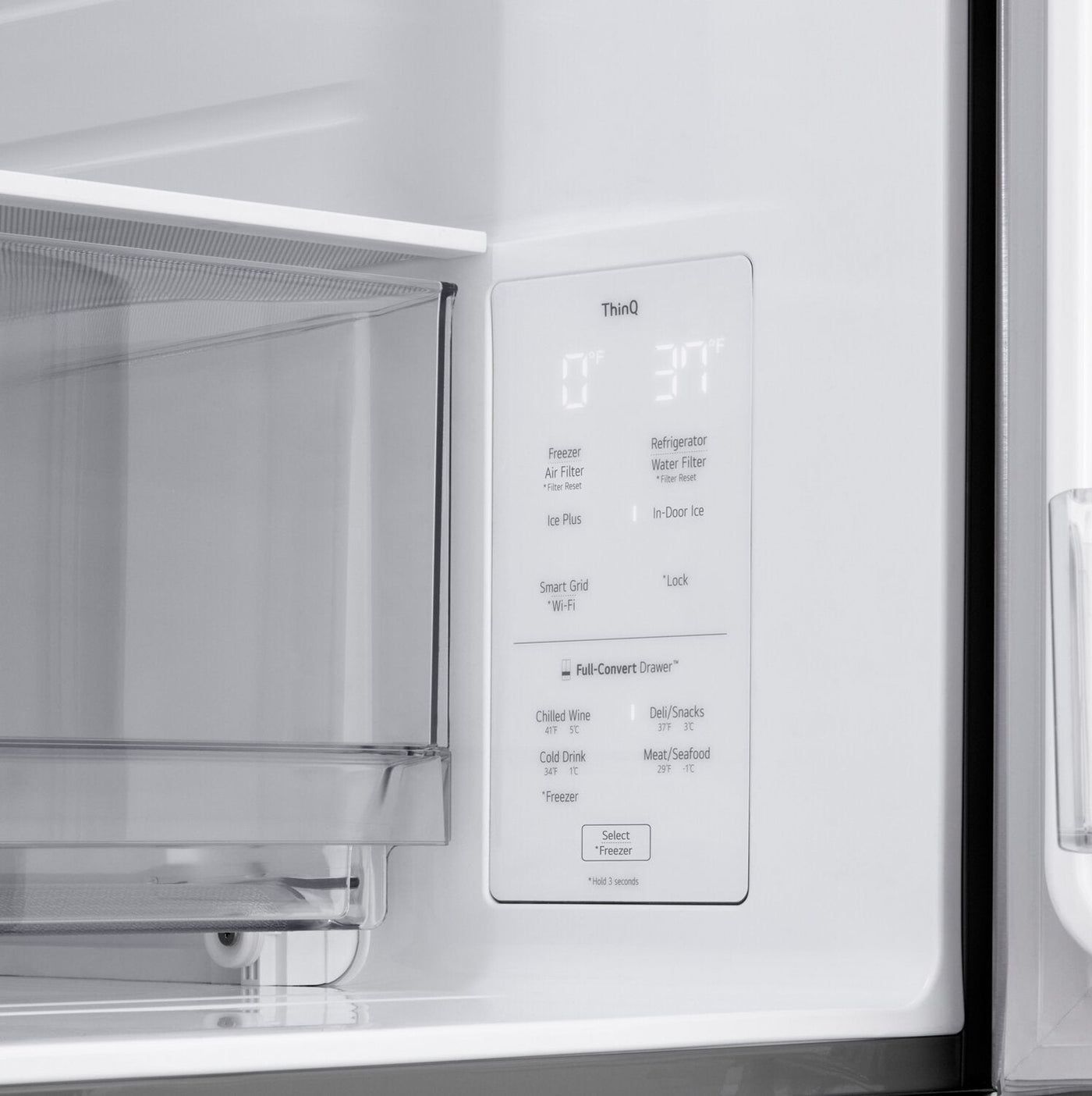 Add some flair to your kitchen with this LG French-door refrigerator. Knock twice on the InstaView window to see more of your favourites without opening the door. MyColor lets you change the InstaView window colour to match your kitchen design, occasion or outfit. Simply choose from five colours – Ruby Red, Sapphire Blue, Citrine Orange, Amethyst Purple and Emerald Green. An incredibly spacious capacity makes room for the whole family’s favourites. Plus, take advantage of the Full-Convert Drawer™ to store anything from wine to frozen treats.